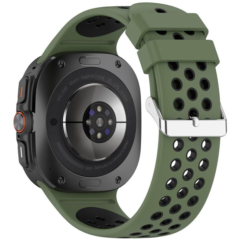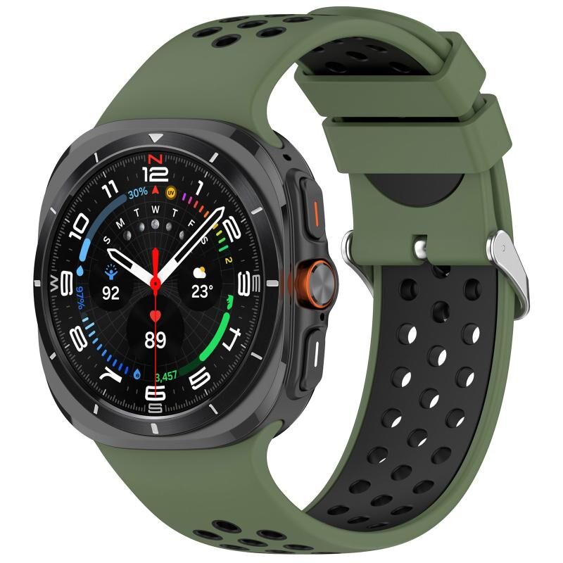 Για το Samsung Galaxy Watch Ultra 47 χιλιοστά τρύπες στυλ μεταλλικό σύνδεσμο δύο χρωμάτων σιλικόνης ρολόι μπάντα ρολόι (Στρατού πράσινο μαύρο)