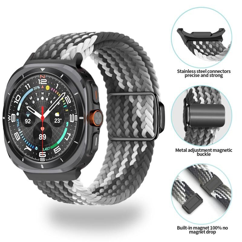 For Samsung Galaxy Watch Ultra 47mm Kalebol Braided Loop Magnetic Black Buckle Watch Band(Black) (Kalebol)