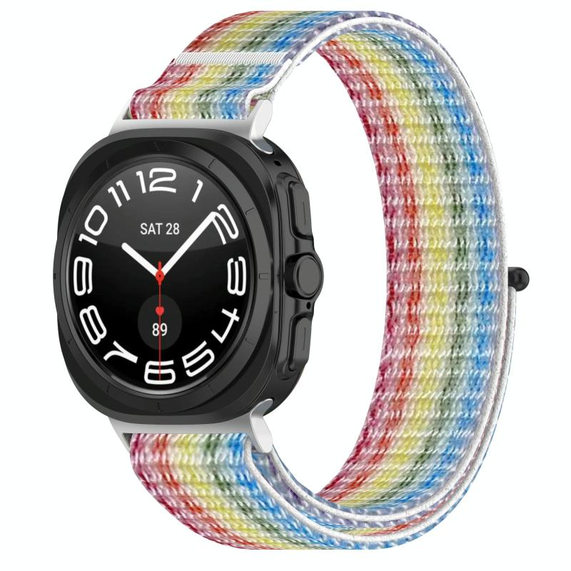 For Samsung Galaxy Watch Ultra 47mm Loop Nylon Hook and Loop Fastener Watch Band(Rainbow)
