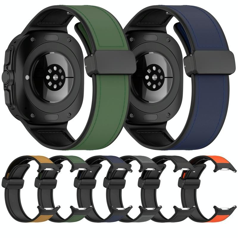 Για Samsung Galaxy Watch Ultra 47mm Μαγνητική Αγκράφα Διπλού Διπλώματος Λουρί Σιλικόνης Δέρματος (Μαύρο)