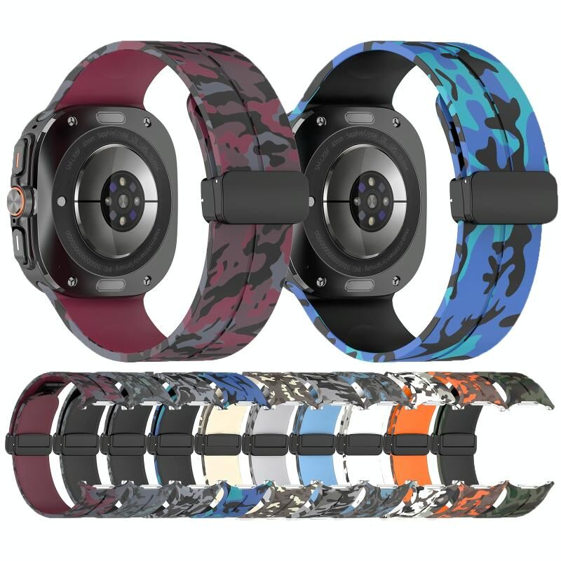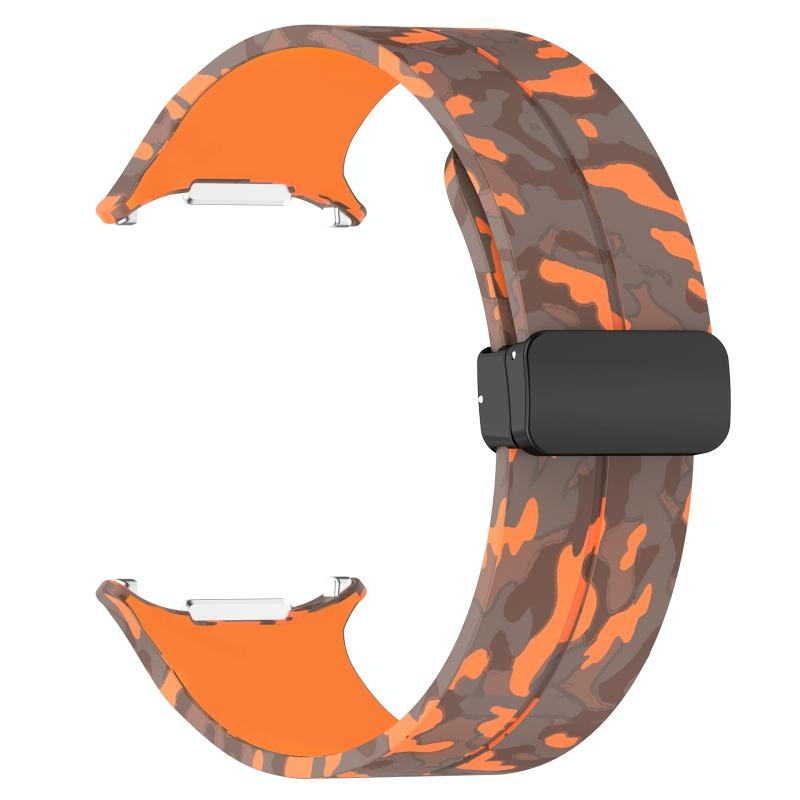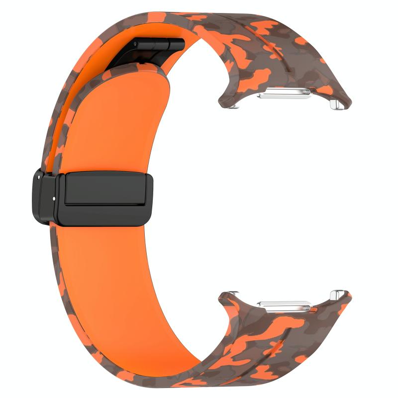 For Samsung Galaxy Watch Ultra 47mm Magnetic Folding Buckle Silicone Watch Band(Camouflage Orange)