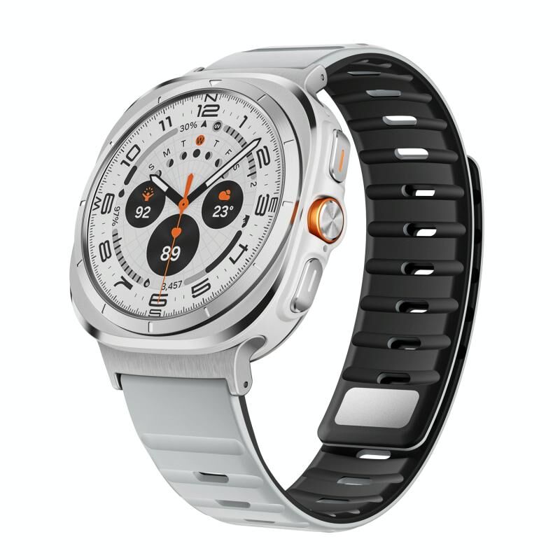Για το Samsung Galaxy Watch Ultra 47mm μαγνητική ζώνη σιλικόνης (ανοιχτό γκρι μαύρο+ασημί)