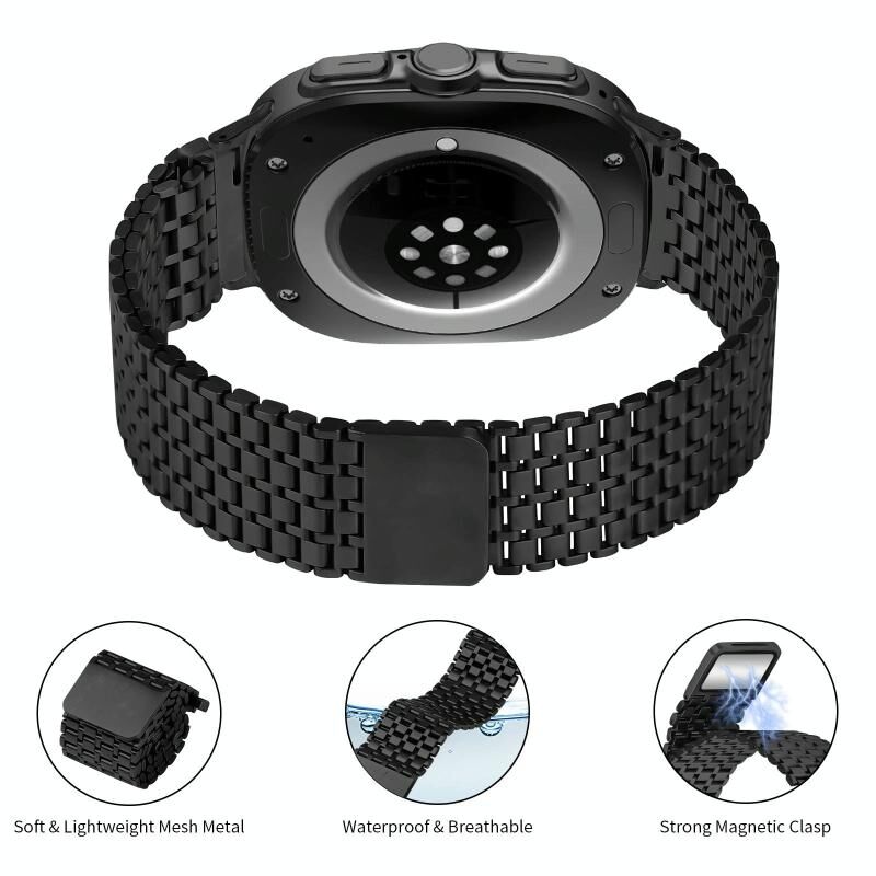 For Samsung Galaxy Watch Ultra 47mm Nine-beads Magnetic Buckle Stainless Steel Watch Band(Black)