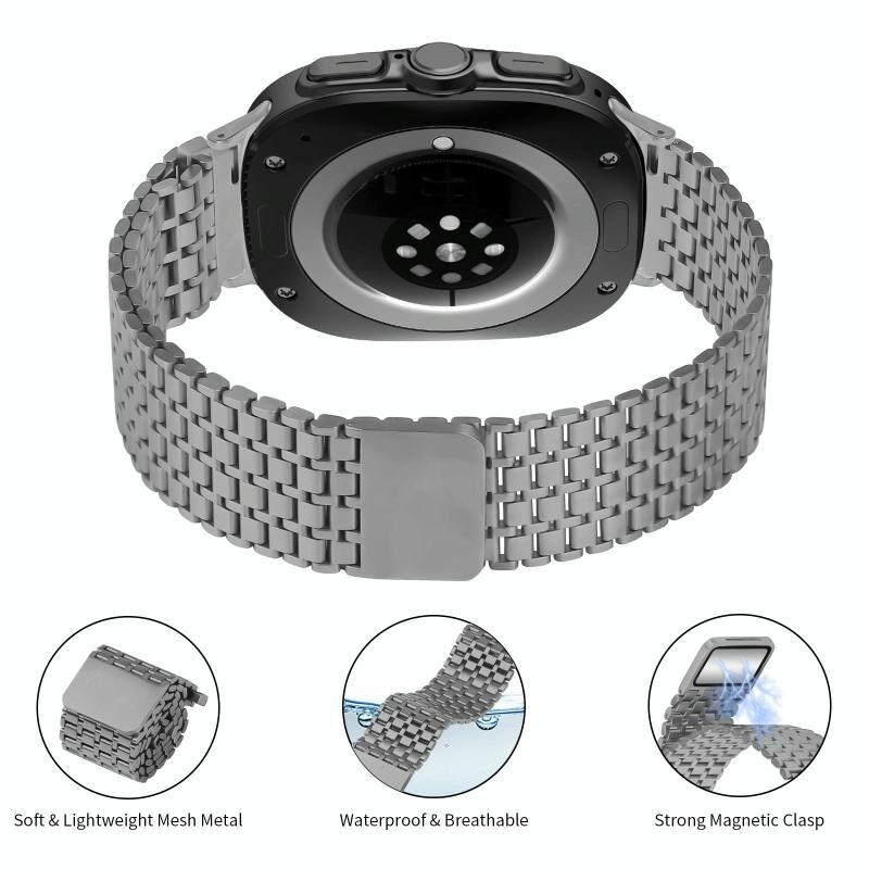 For Samsung Galaxy Watch Ultra 47mm Nine-beads Magnetic Buckle Stainless Steel Watch Band(Titanium Color)