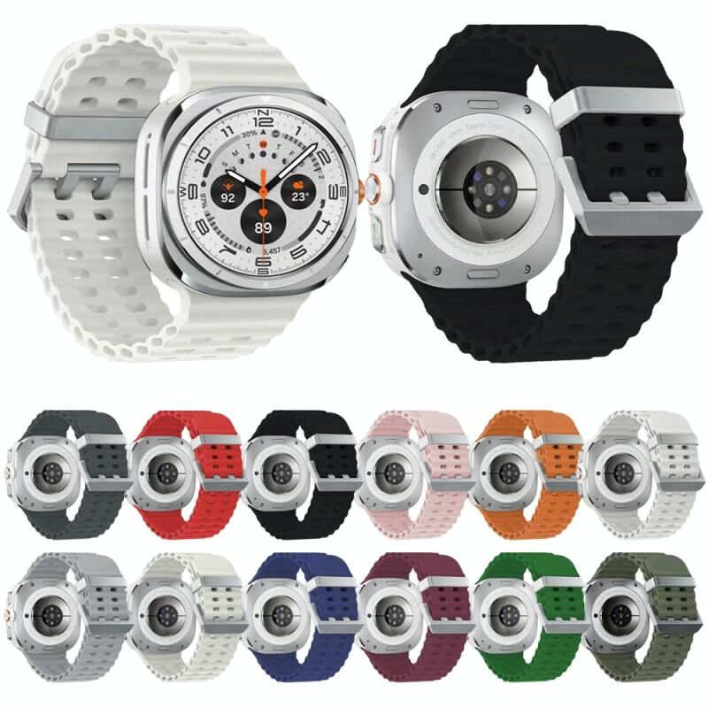Για το Samsung Galaxy Watch Ultra 47mm Ocean Dual Silver Buckle Silicone Watch Band (Μαύρο)