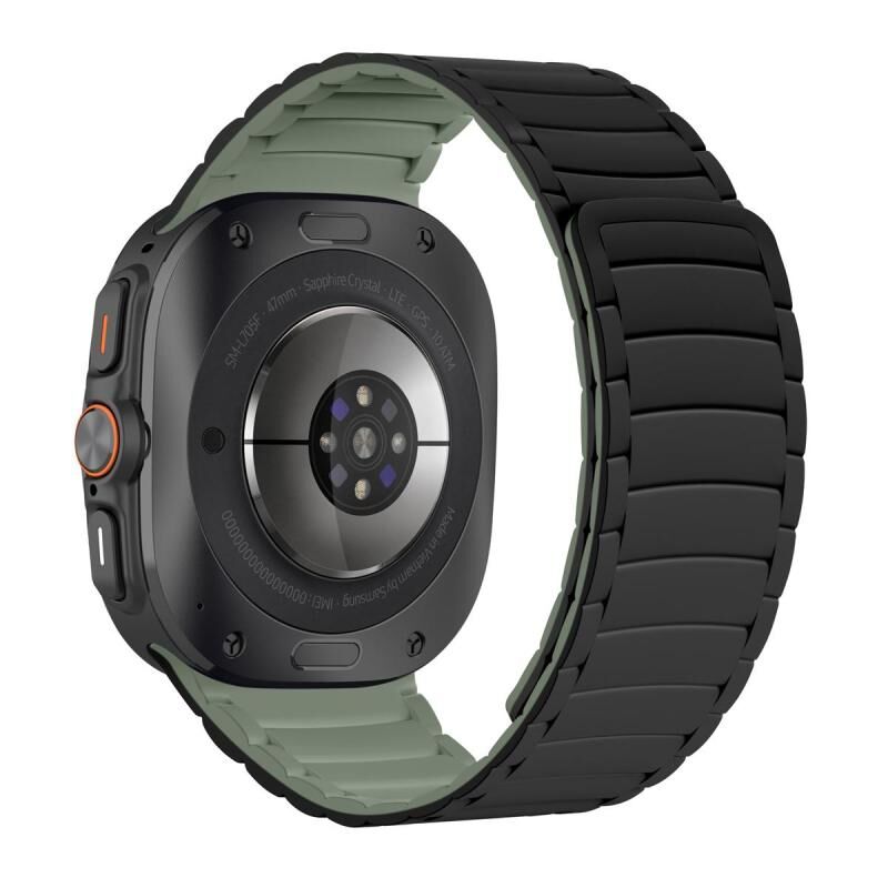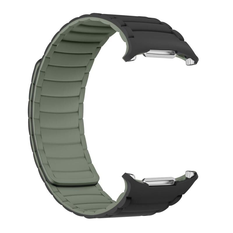 For Samsung Galaxy Watch Ultra 47mm Silicone Sport Magnetic Watch Band(Black+Light Green)