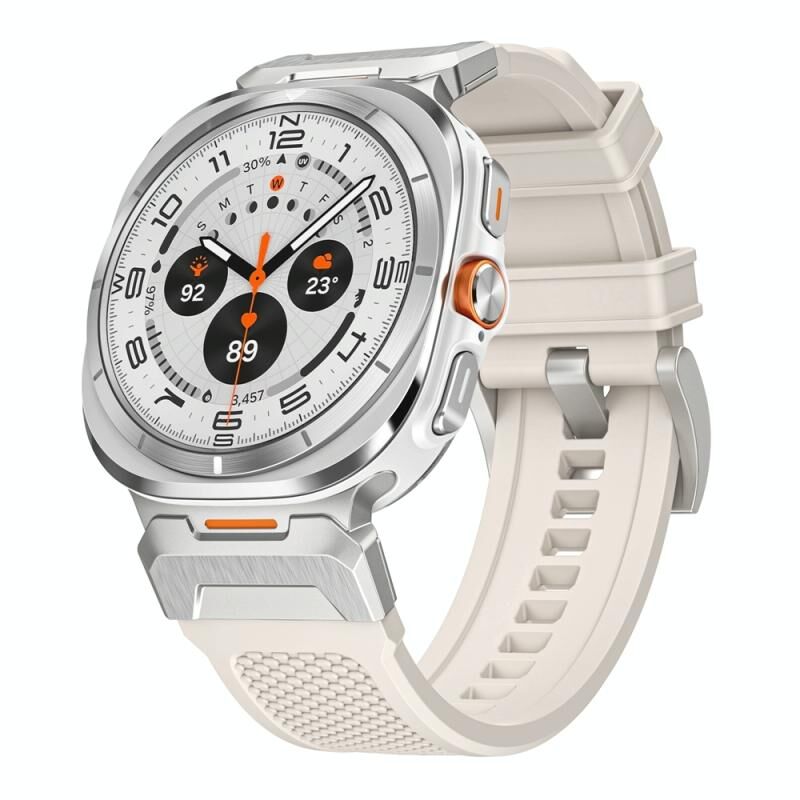 Για το Samsung Galaxy Watch Ultra 47mm Silver Steel Buckle Rubber Quick Release Watch Band (Starlight)