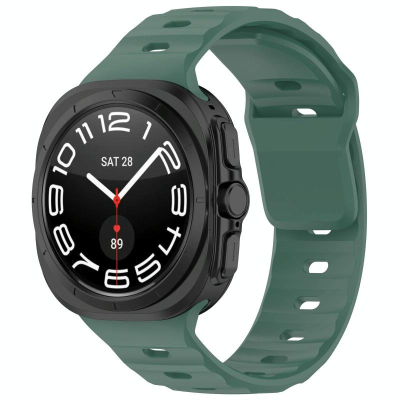 For Samsung Galaxy Watch Ultra 47mm Solid Color Reverse Buckle Silicone Watch Band(Dark Green)