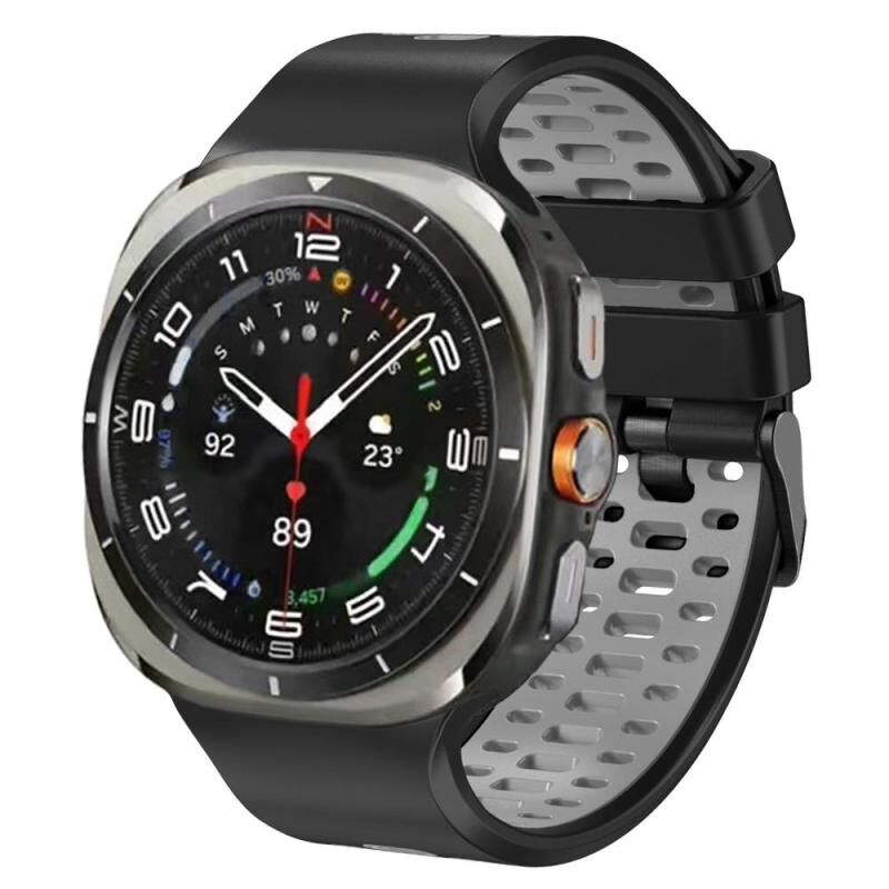 For Samsung Galaxy Watch Ultra 47mm Two Color Silicone Breathable Watch Band(Black Grey)