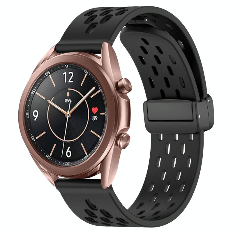 For Samsung Galaxy Watch3 41mm 20mm Folding Magnetic Clasp Silicone Watch Band(Black)