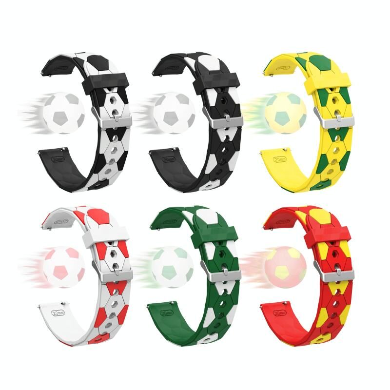 Για Samsung Galaxy Watch3 41mm 20mm ποδοσφαιρικό στυλ μεταλλική σύνδεση σιλικόνης ρολόι μπάντα ρολογιού (κόκκινο + κίτρινο)