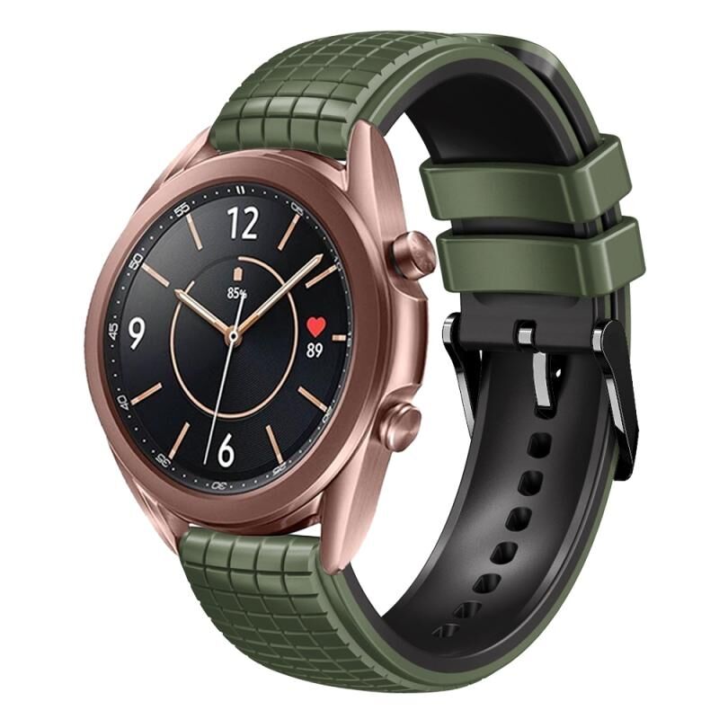 Για το Samsung Galaxy Watch3 41mm 20mm Mesh Δύο Χρώμα σιλικόνης ρολόι μπάντα ρολογιών (Στρατού πράσινο μαύρο)