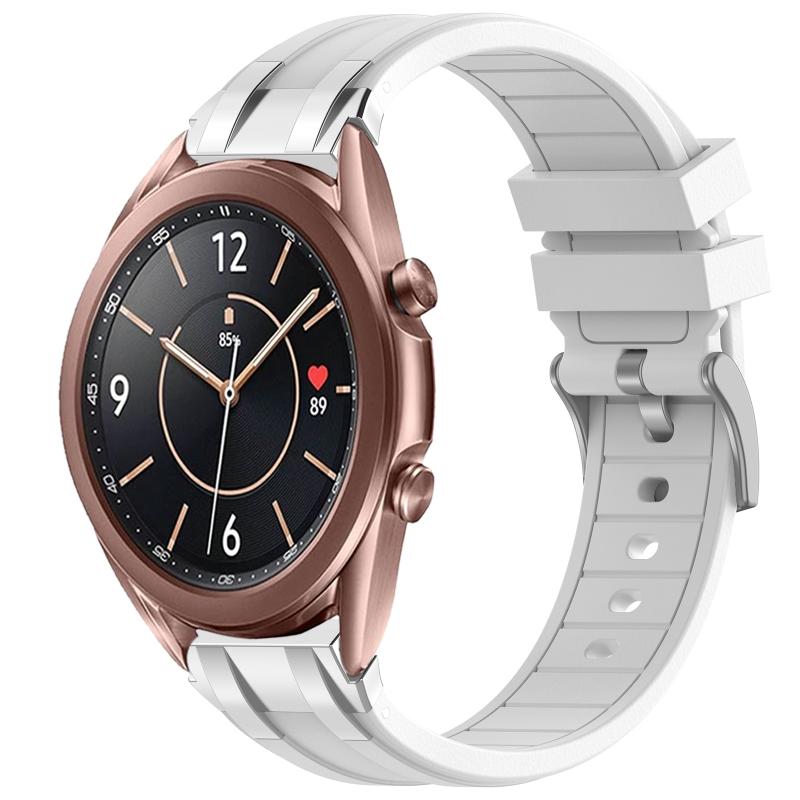 For Samsung Galaxy Watch3 41mm 20mm Quick Release Silver Buckle Royal Silicone Watch Band(White)