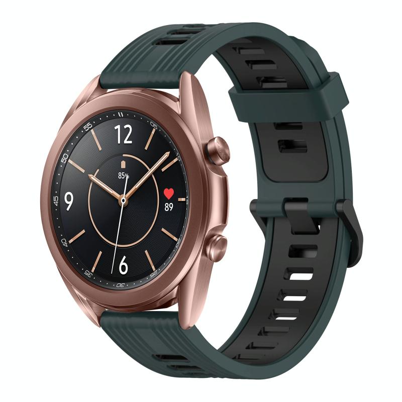 For Samsung Galaxy Watch3 41mm 20mm Vertical Pattern Two-Color Silicone Watch Band(Olive Green + Black)