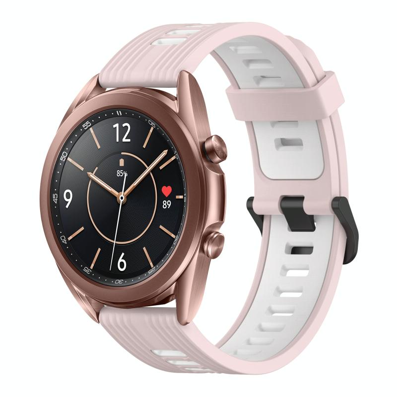 For Samsung Galaxy Watch3 41mm 20mm Vertical Pattern Two-Color Silicone Watch Band(Pink+White)
