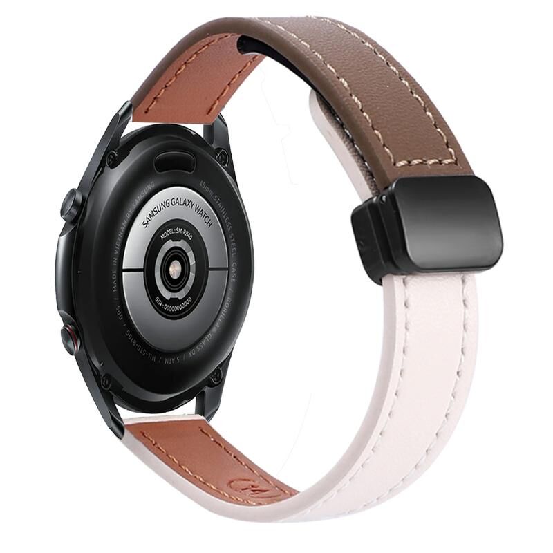 For Samsung Galaxy Watch3 41mm Slim Magnetic Buckle 20mm Microfiber Leather Watch Band(Apricot+Caramel Macchiato)