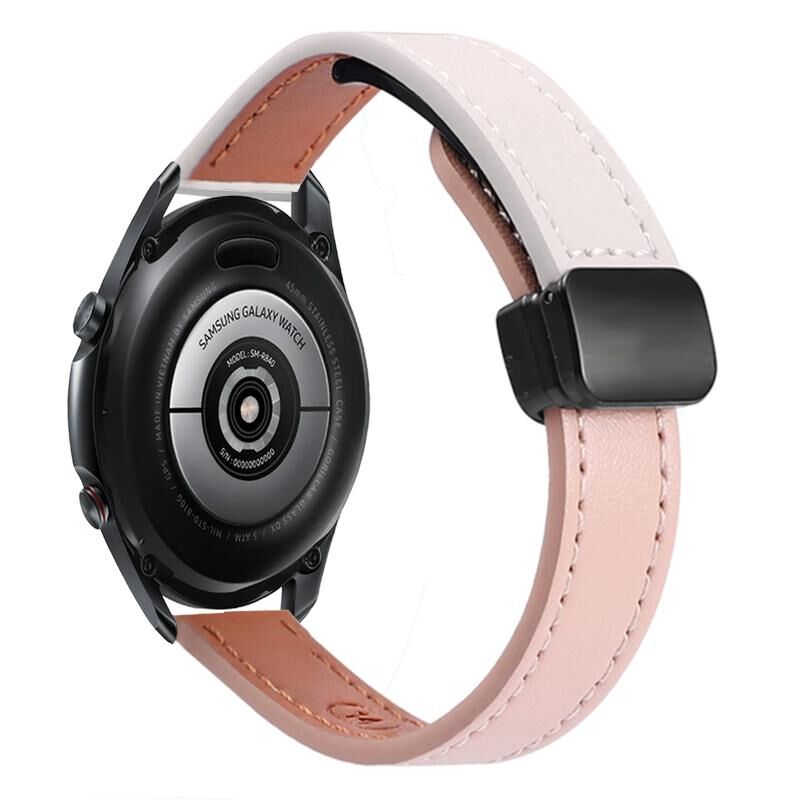 For Samsung Galaxy Watch3 41mm Slim Magnetic Buckle 20mm Microfiber Leather Watch Band(Pink+Apricot)