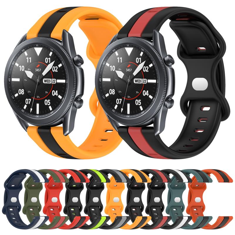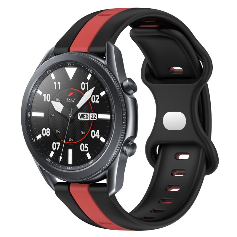 For Samsung Galaxy Watch3 45mm 22mm Butterfly Buckle Two-Color Silicone Watch Band(Black+Red)