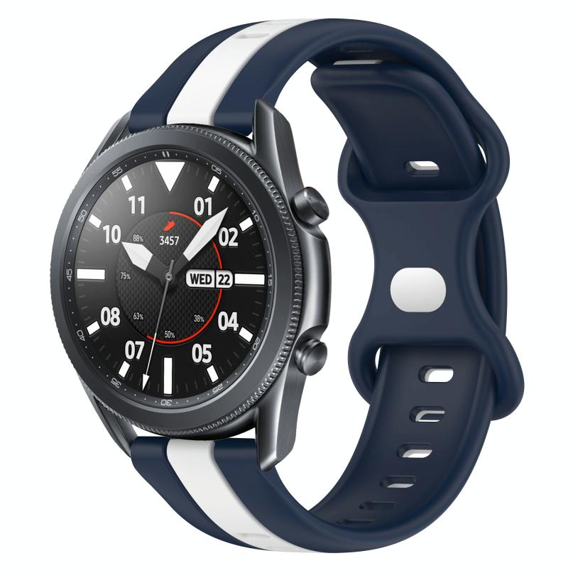 For Samsung Galaxy Watch3 45mm 22mm Butterfly Buckle Two-Color Silicone Watch Band(White+Blue)
