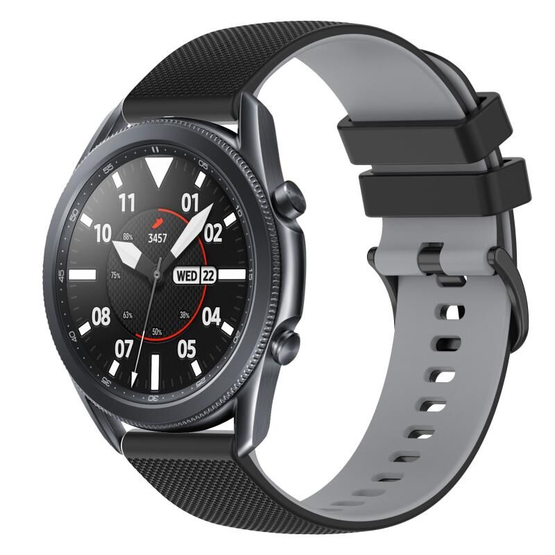 For Samsung Galaxy Watch3 45mm 22mm Checkered Two-Color Silicone Watch Band(Black+Grey)
