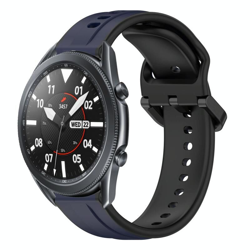 Για το Samsung Galaxy Watch3 45mm 22mm κυρτό βρόχο σιλικόνης δύο χρωμάτων (μπλε+μαύρο)