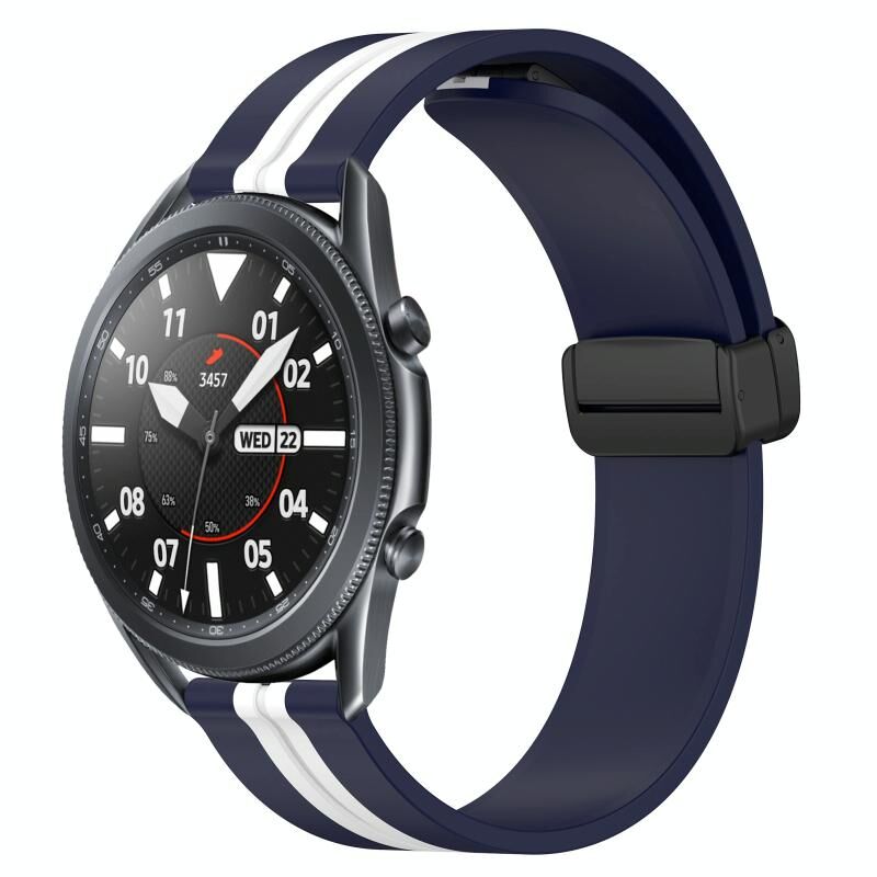 Για το Samsung Galaxy Watch3 45mm 22mm Πτυσσόμενο μαγνητικό κούμπωμα ζώνη ρολογιού σιλικόνης (Μπλε + Λευκό)