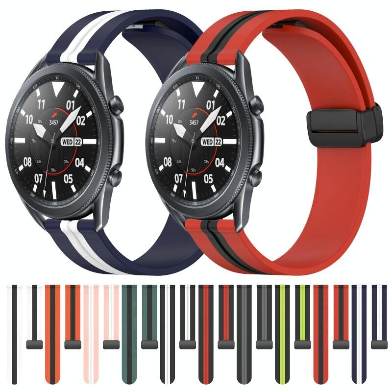 Για Samsung Galaxy Watch3 45mm 22mm Πτυσσόμενο μαγνητικό κούμπωμα ζώνη ρολογιού σιλικόνης (ροζ+λευκό)