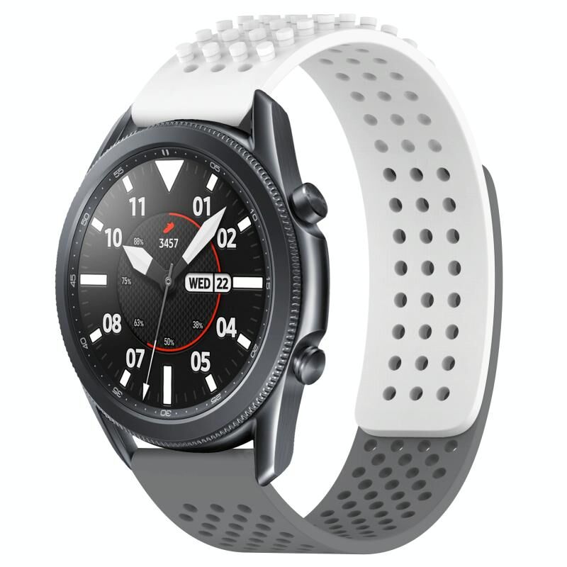 Για το Samsung Galaxy Watch3 45mm 22mm οπές αναπνεύσιμο 3D Dots σιλικόνης ρολόι μπάντα ρολογιού (λευκό + γκρι)