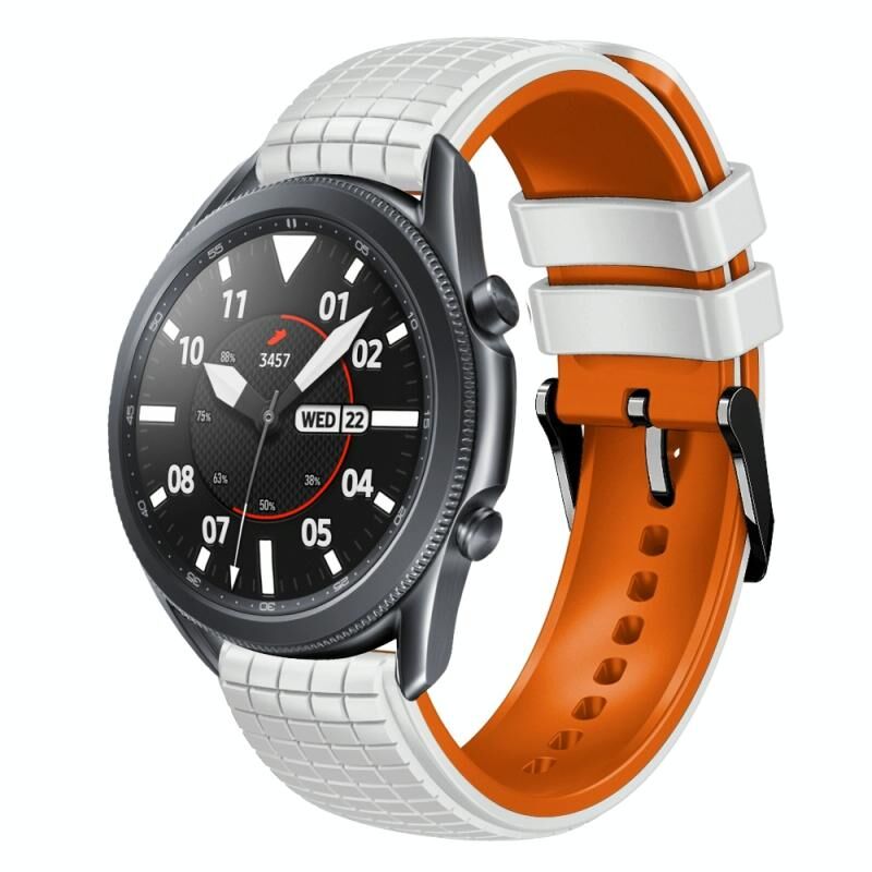 Για το Samsung Galaxy Watch3 45mm 22mm Mesh Δύο χρώματα σιλικόνης ρολόι μπάντα ρολογιού (λευκό πορτοκαλί)