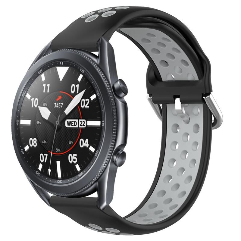 Για το Samsung Galaxy Watch3 45mm 22mm Διάτρητη αναπνεύσιμη αθλητική ζώνη ρολογιού σιλικόνης (μαύρο + γκρι)