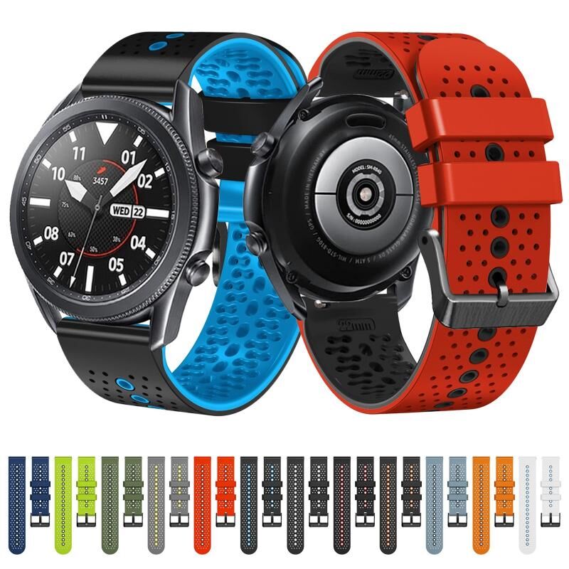 Για το Samsung Galaxy Watch3 45mm 22mm διάτρητη ζώνη ρολογιού σιλικόνης δύο χρωμάτων (μαύρο+γκρι)