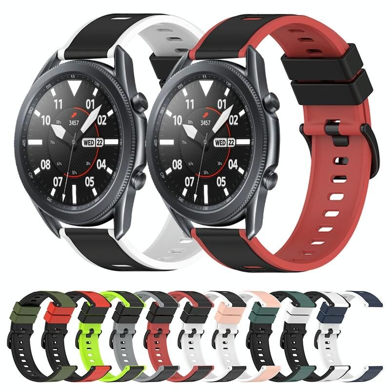 Για το Samsung Galaxy Watch3 45mm 22mm Δύο χρωμάτων πορώδες λουράκι σιλικόνης για ρολόι (πράσινο+μαύρο)