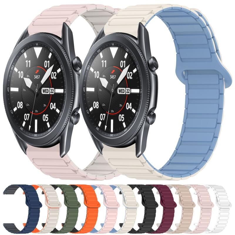 Για Samsung Galaxy Watch3 45mm Διπλού Χρώματος Μαγνητική Αγκράφα Σιλικόνης Λουράκι Ρολογιού (Μαύρο)
