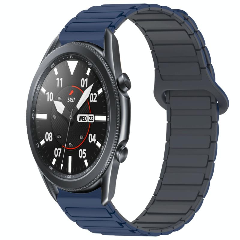For Samsung Galaxy Watch3 45mm Dual Color Magnetic Buckle Silicone Watch Band(Blue+Grey)