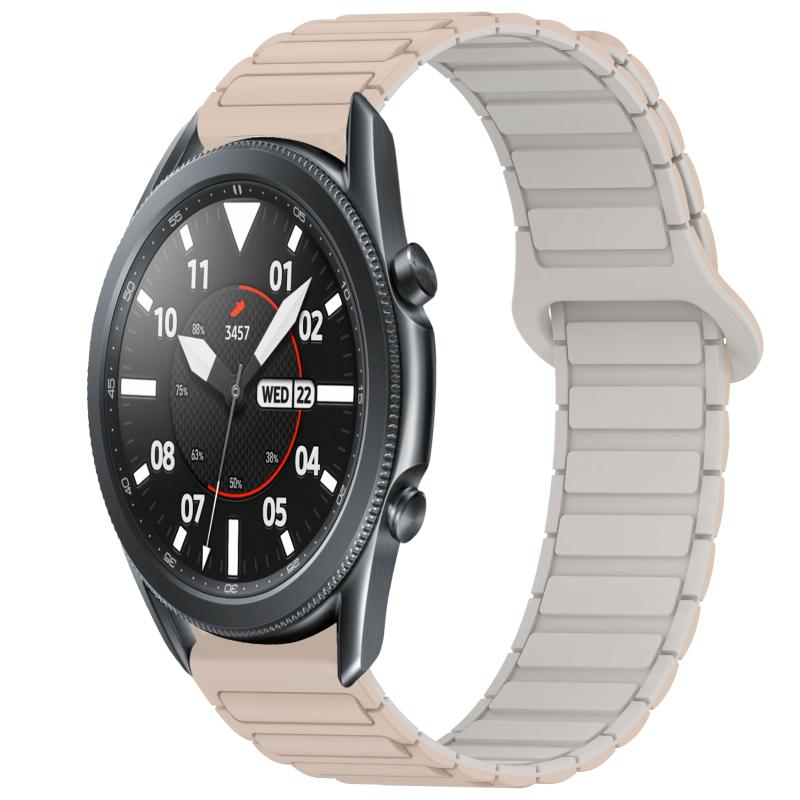 For Samsung Galaxy Watch3 45mm Dual Color Magnetic Buckle Silicone Watch Band(Milk Tea+Rocky White)