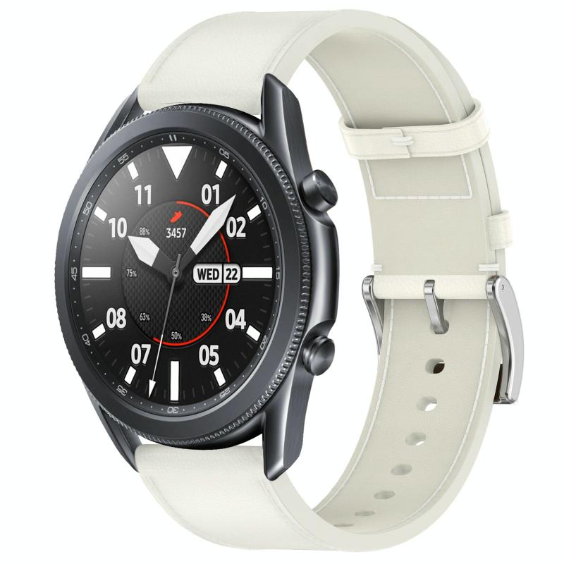 For Samsung Galaxy Watch3 45mm Press Button 22mm Leather Watch Band(White)