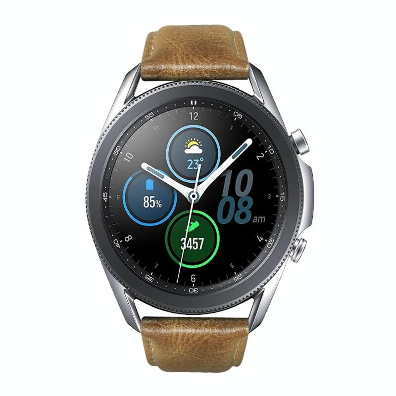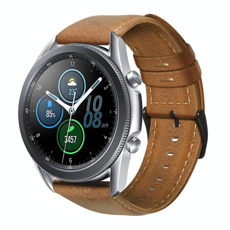 Για Samsung Galaxy Watch3 45mm R840 Λουρί Ρολογιού από Γνήσιο Δέρμα με Λάδι Κεριού (Κίτρινο Καφέ)