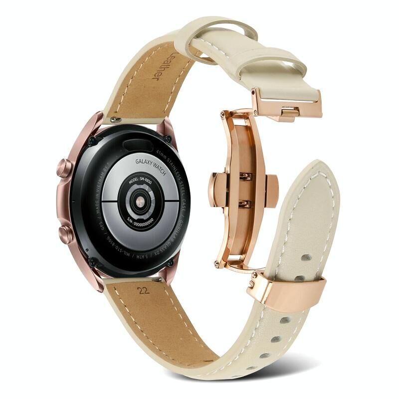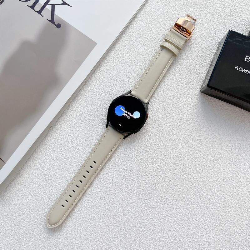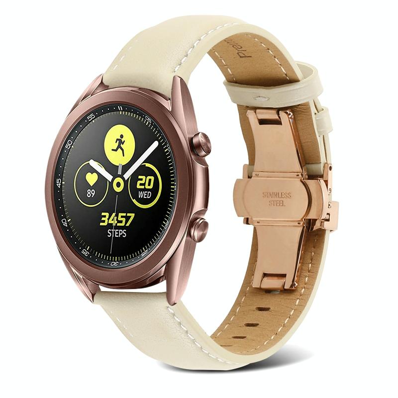 For Samsung Galaxy Watch4 20mm Butterfly Buckle Stitching Genuine Leather Watch Band(Apricot)