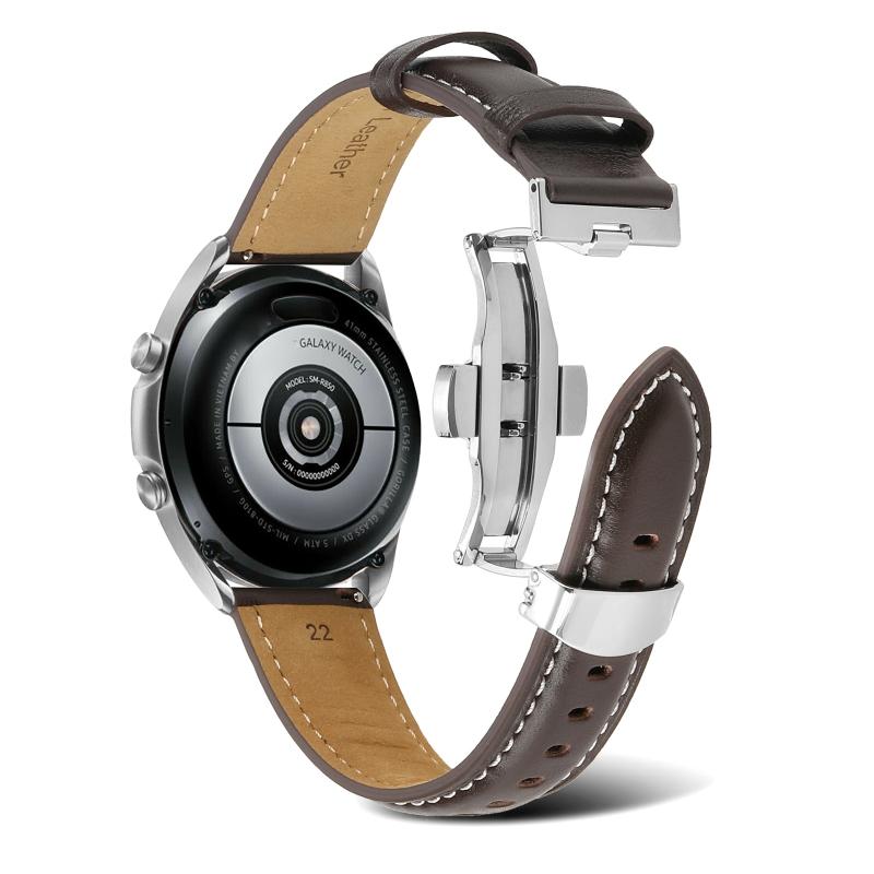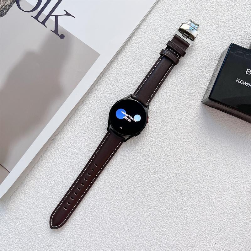 For Samsung Galaxy Watch4 20mm Butterfly Buckle Stitching Genuine Leather Watch Band(Coffee)