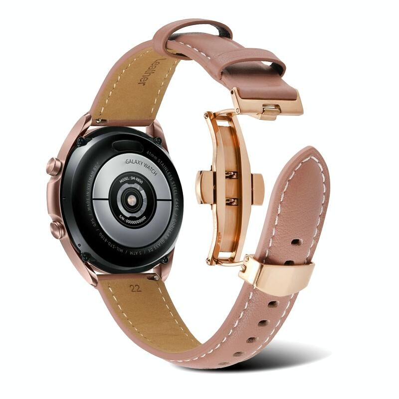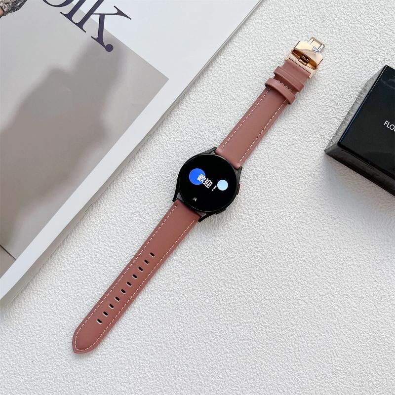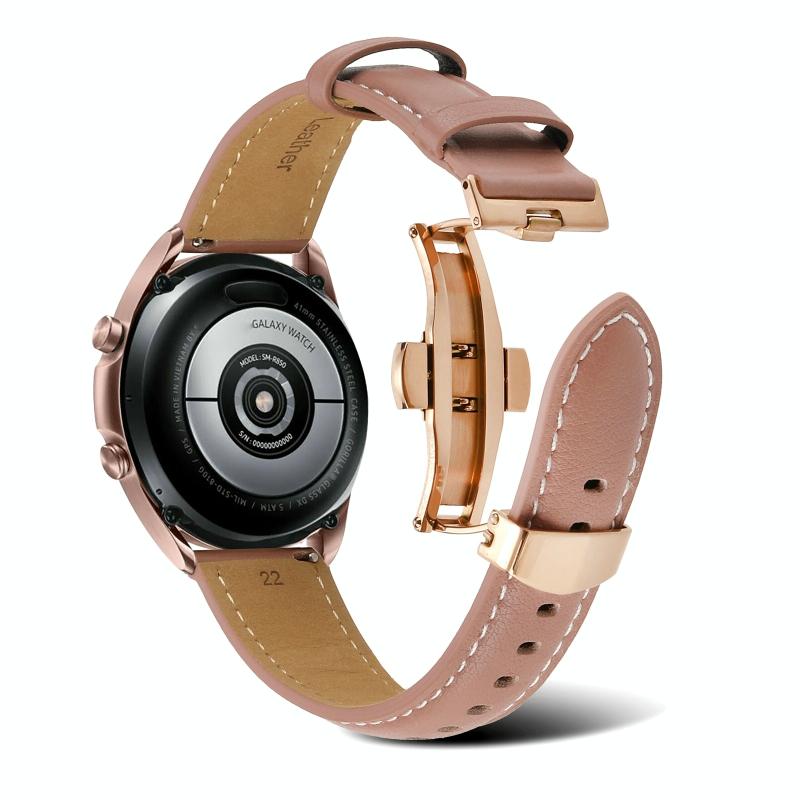 For Samsung Galaxy Watch4 20mm Butterfly Buckle Stitching Genuine Leather Watch Band(Dark Pink)