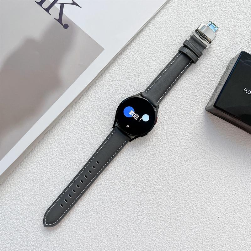 For Samsung Galaxy Watch4 20mm Butterfly Buckle Stitching Genuine Leather Watch Band(Light Grey)
