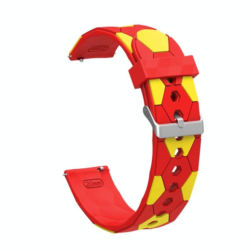 Για το Samsung Galaxy Watch4 / 4 Classic 20 χιλιοστά στυλ ποδοσφαίρου μεταλλική σύνδεση σιλικόνης ρολόι μπάντα ρολογιού (κόκκινο + κίτρινο)