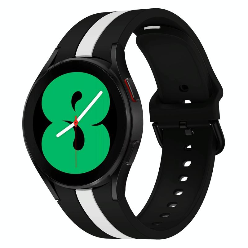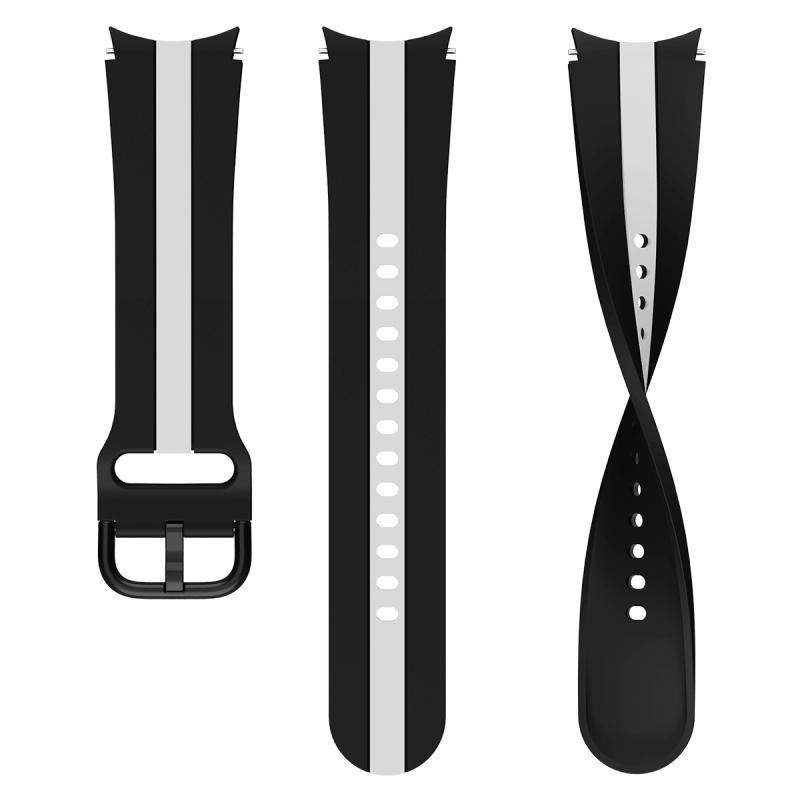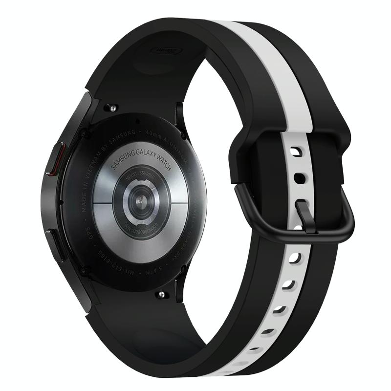 For Samsung Galaxy Watch4 40/44mm / Watch4 Classic 42/46mm Three Vertical Stripes Two-color Silicone Watch Band(Black White)