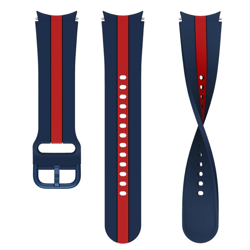 For Samsung Galaxy Watch4 40/44mm / Watch4 Classic 42/46mm Three Vertical Stripes Two-color Silicone Watch Band(Blue Red)