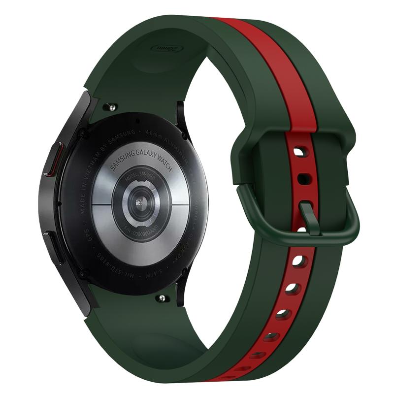 For Samsung Galaxy Watch4 40/44mm / Watch4 Classic 42/46mm Three Vertical Stripes Two-color Silicone Watch Band(Green Red)