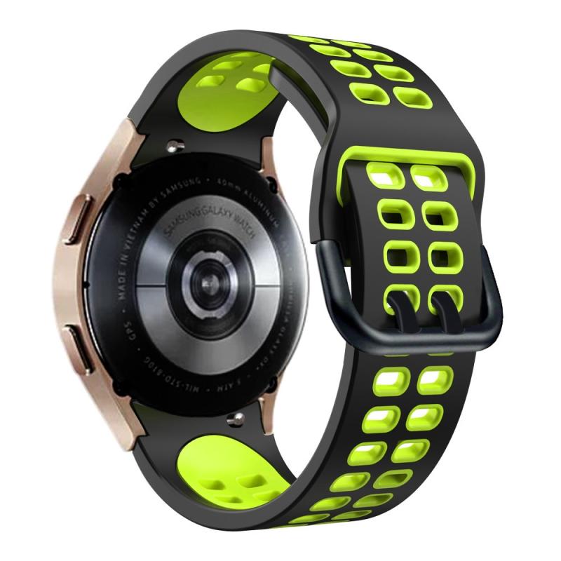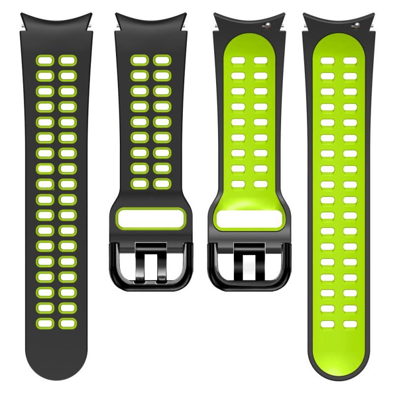 For Samsung Galaxy Watch4 40mm / 44mm Double-row Hole Two-color Silicone Watch Band(Black Lime Green)