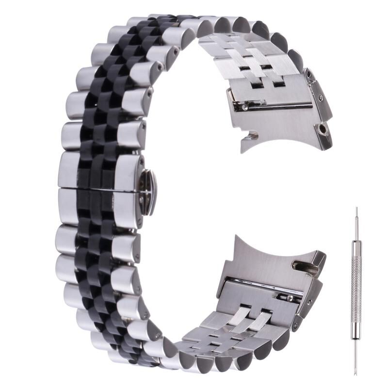 For Samsung Galaxy Watch4 40mm/44mm Five-bead Stainless Steel Watch Band(Silver Black)