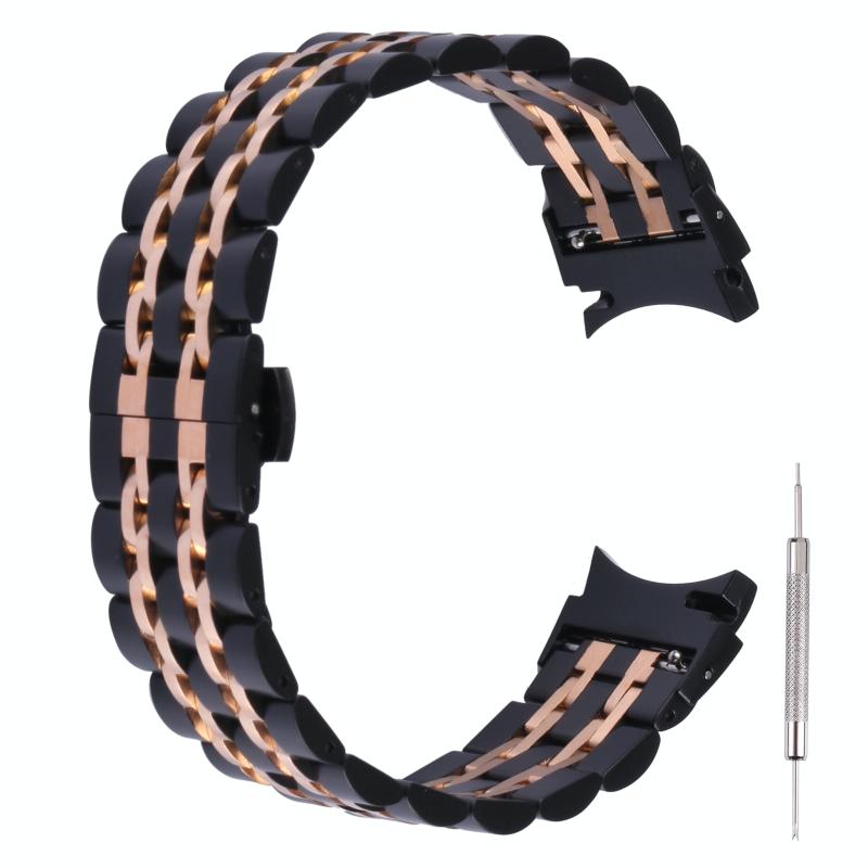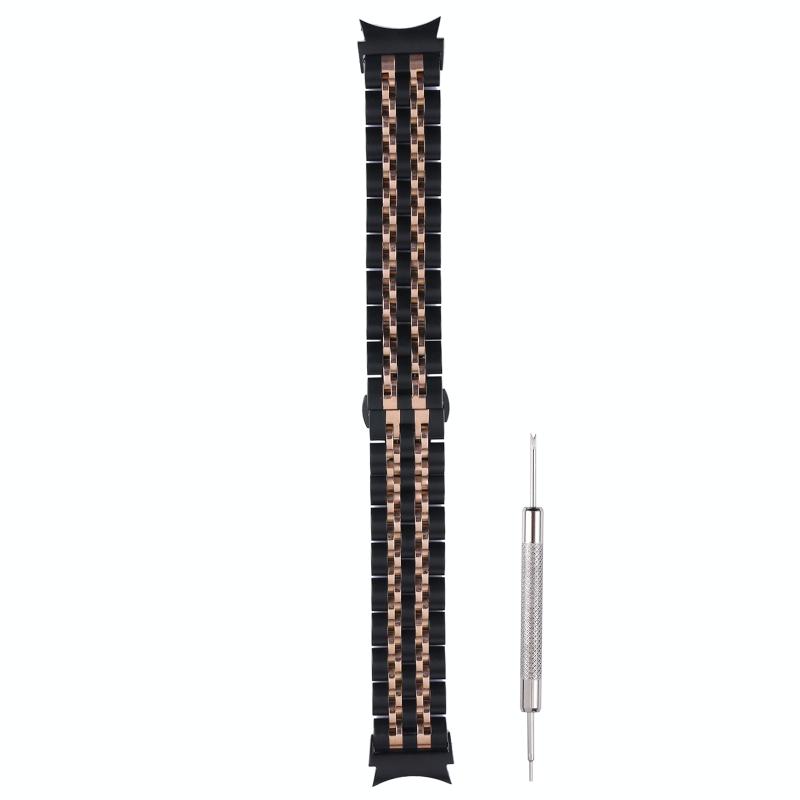 For Samsung Galaxy Watch4 40mm/44mm Seven-bead Stainless Steel Watch Band(Black Rose Gold)