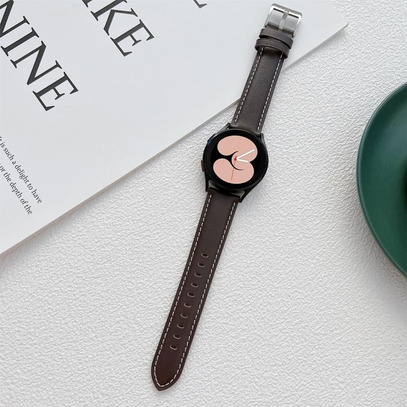 Για Samsung Galaxy Watch4 40mm / 44mm Δερμάτινο Λουρί Ραφής (Σκούρο καφέ)