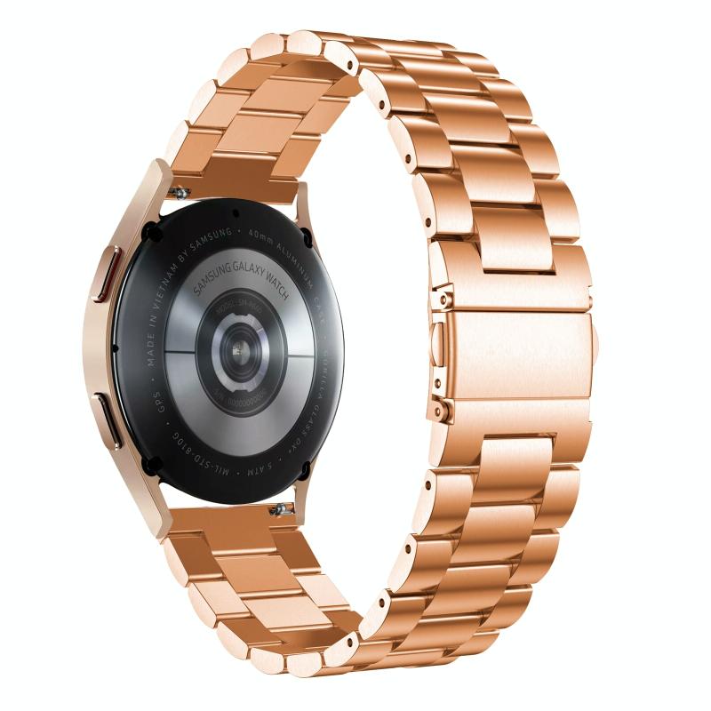 For Samsung Galaxy Watch4 40mm/44mm Universal Flat Head Three-bead Stainless Steel Watch Band(Rose Gold)